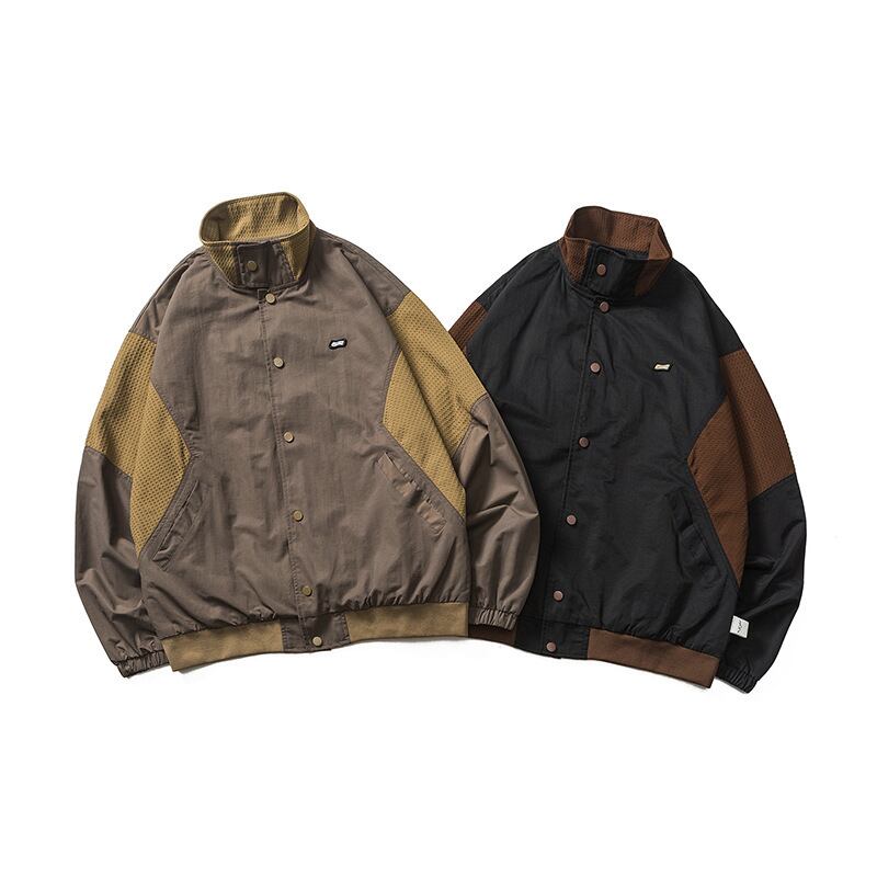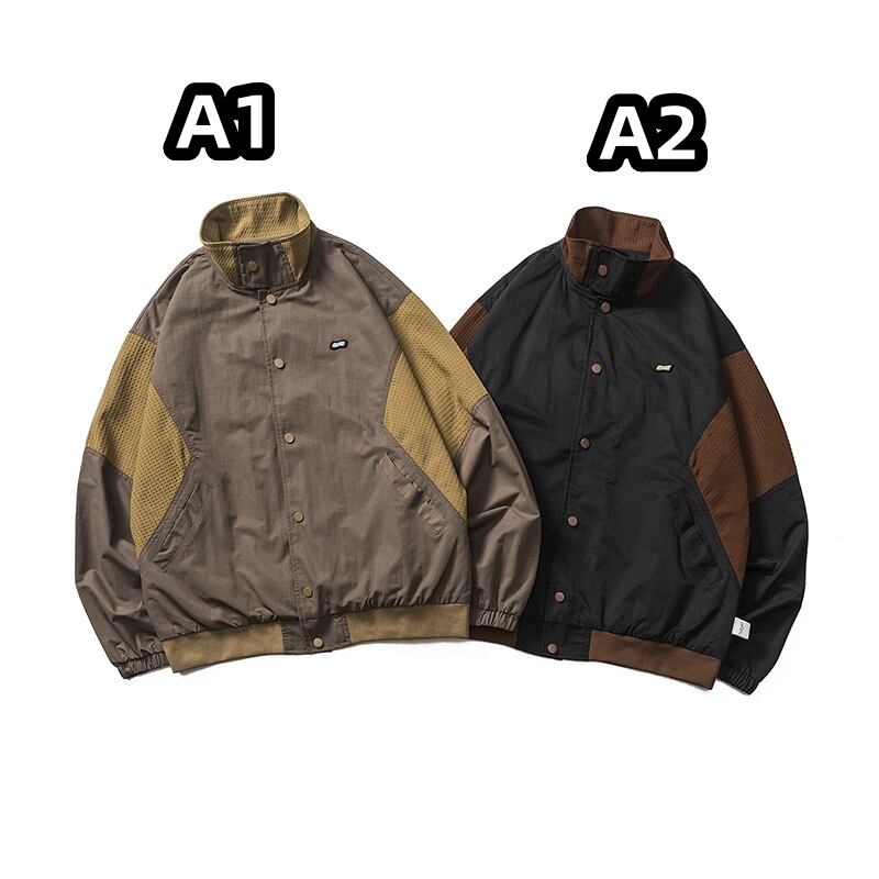 秋冬新品 コントラストパネルカラージャケット メンズ 無地 レトロ アウトドアアウターコート ゆったり ファッション